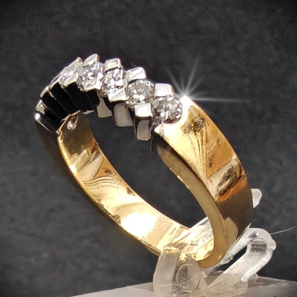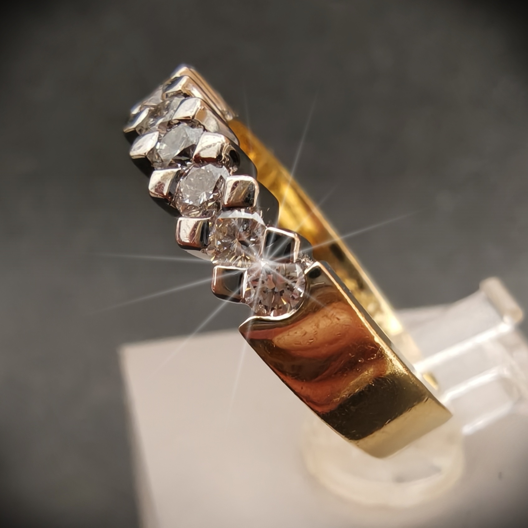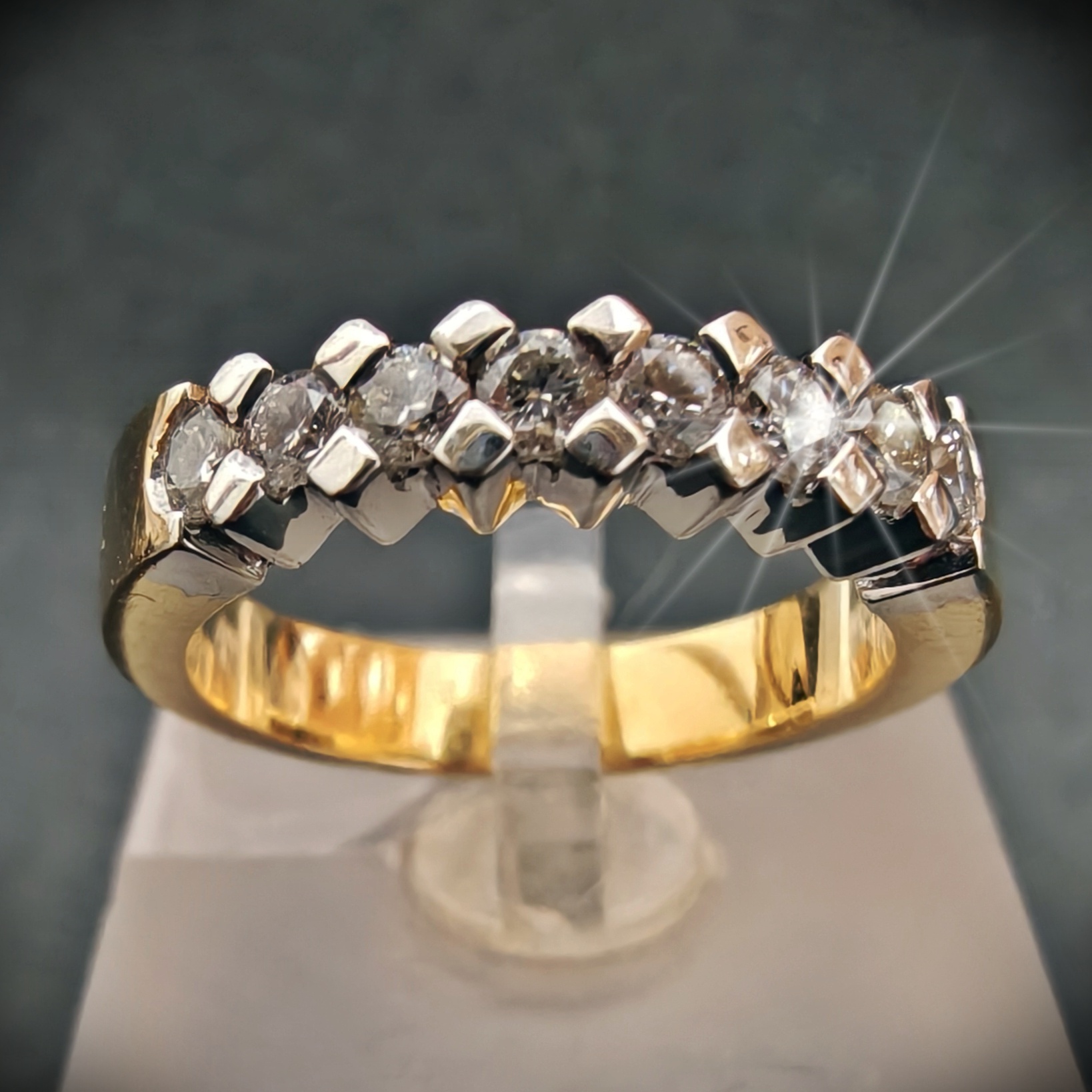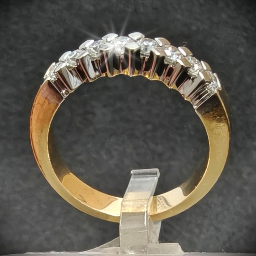 Anillo bicolor con diamantes. Tipo: Anillo. Género: Unisex. Material: Oro 18 K. Medida: nº 13. Peso: 6.23 gramos. Piedras: Diamantes. Estado: segunda mano, perfecto estado.