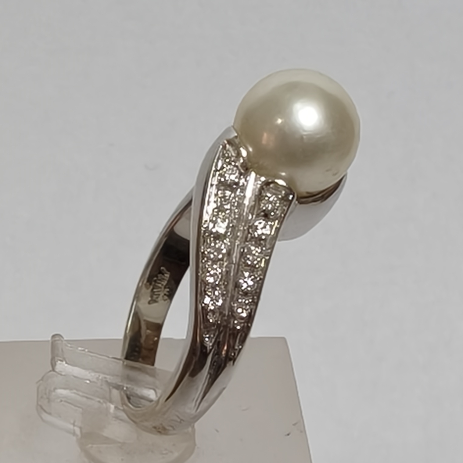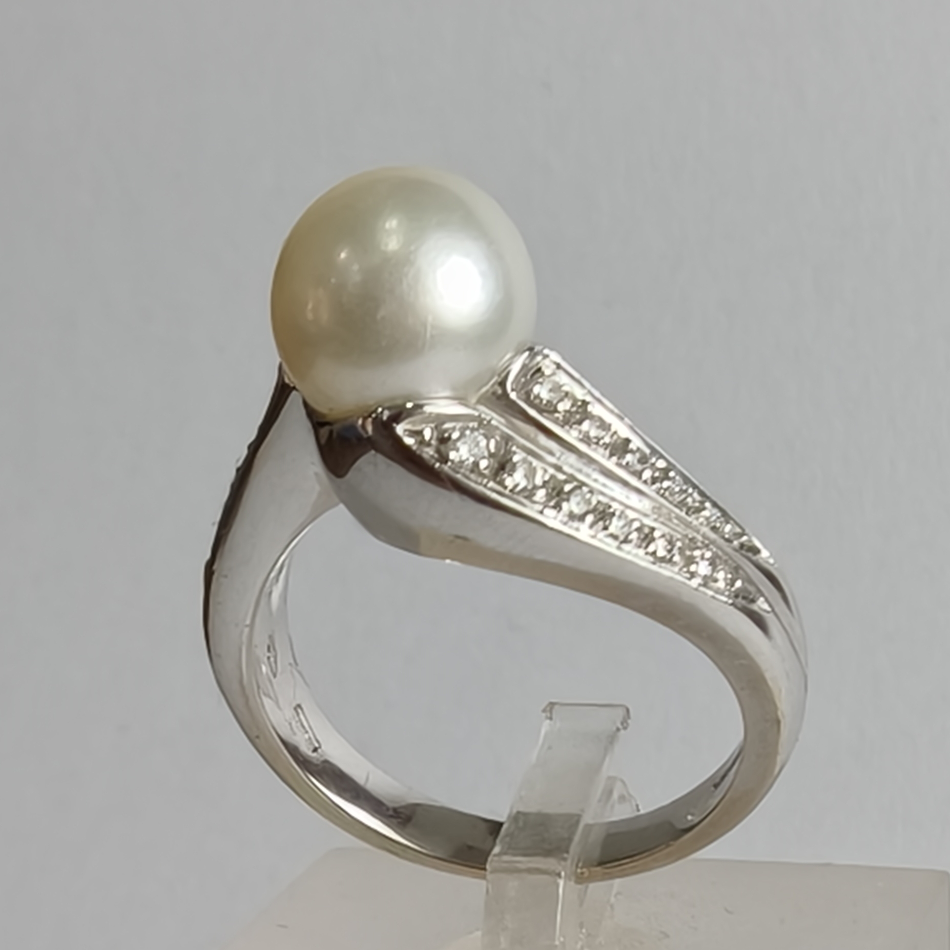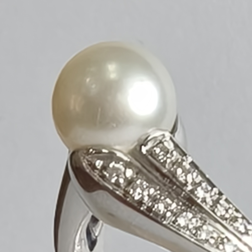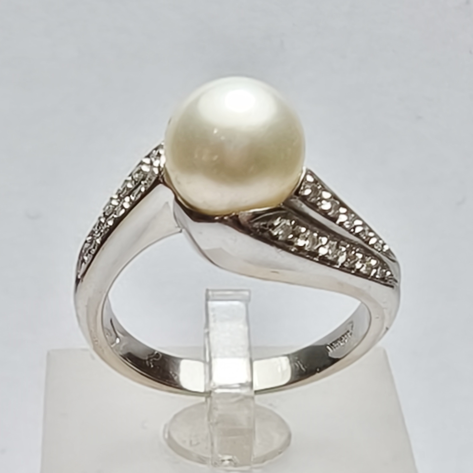 Piedras: Diamantes – 22 diamantes talla brillante de 0,01 quilates y perla.