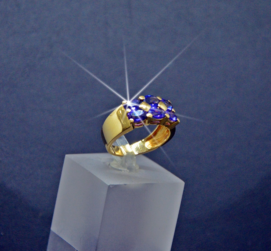 Anillo diseño con piedras violetas oro 18 K. Tipo: Anillo. Género: Unisex. Material: Oro 18 K. Medida: nº 18. Peso: 5,71 gramos. Piedras: color violeta. Estado: segunda mano, perfecto estado.