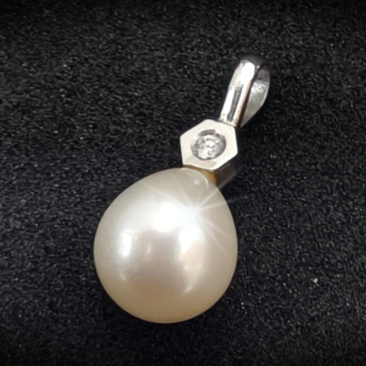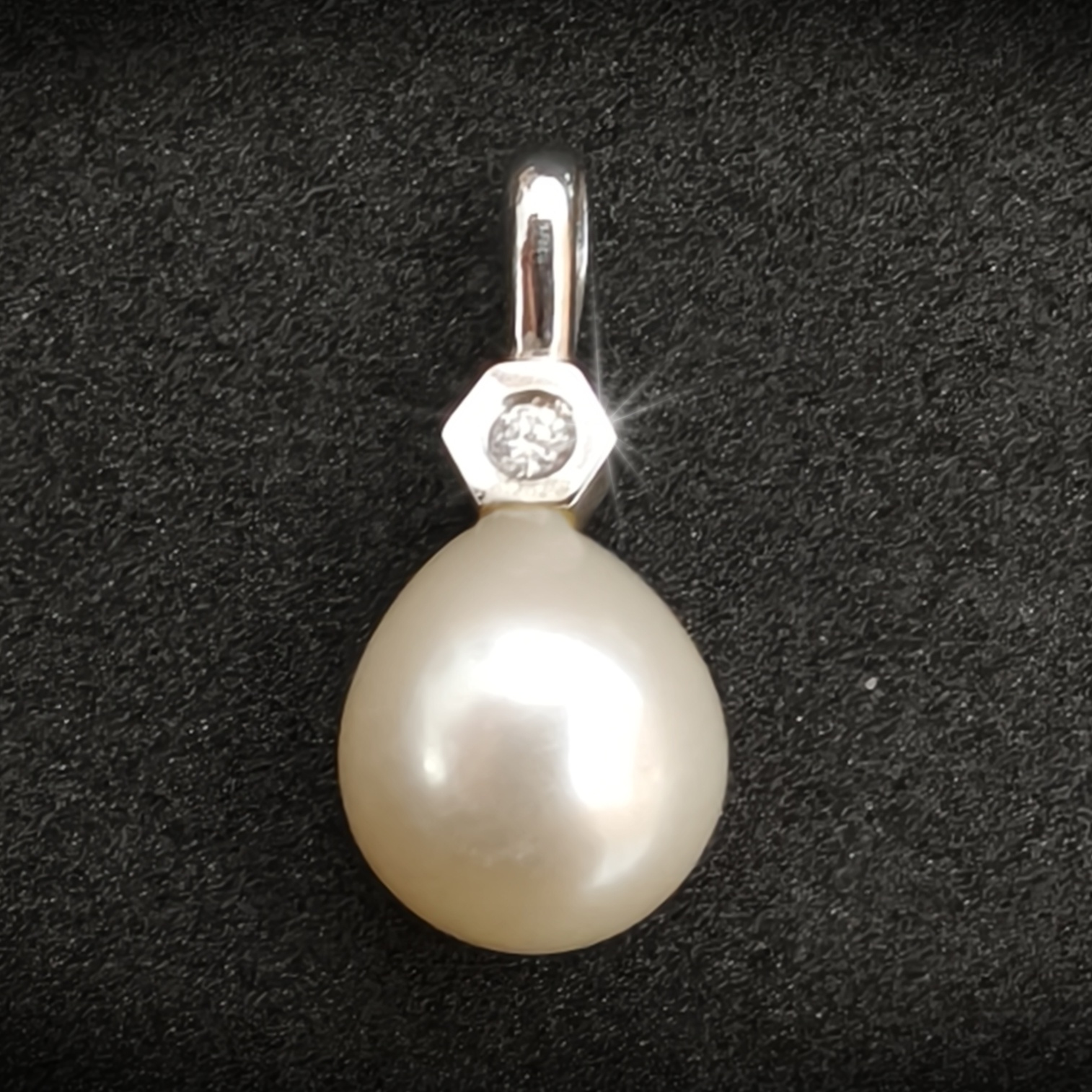 Colgante oro balnco con diamante y perla. Tipo: Colgante. Género: Unisex. Material: Oro 18 K. Medida: 20mm de largo (aproximadamente). Peso: 2.12 gramos. Piedras: diamante. Estado: perfecto estado, segunda mano
