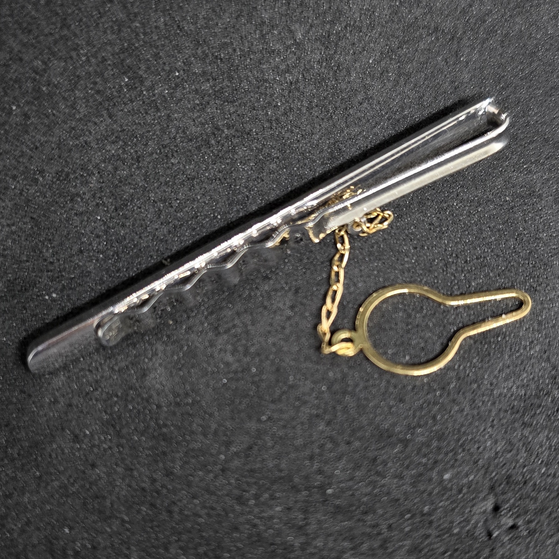 Medida: ancho = 6,0 cm, alto = 0,8 cm, fondo = de 0.7 a 0.3 cm. largo cadena = 6,5 cm.